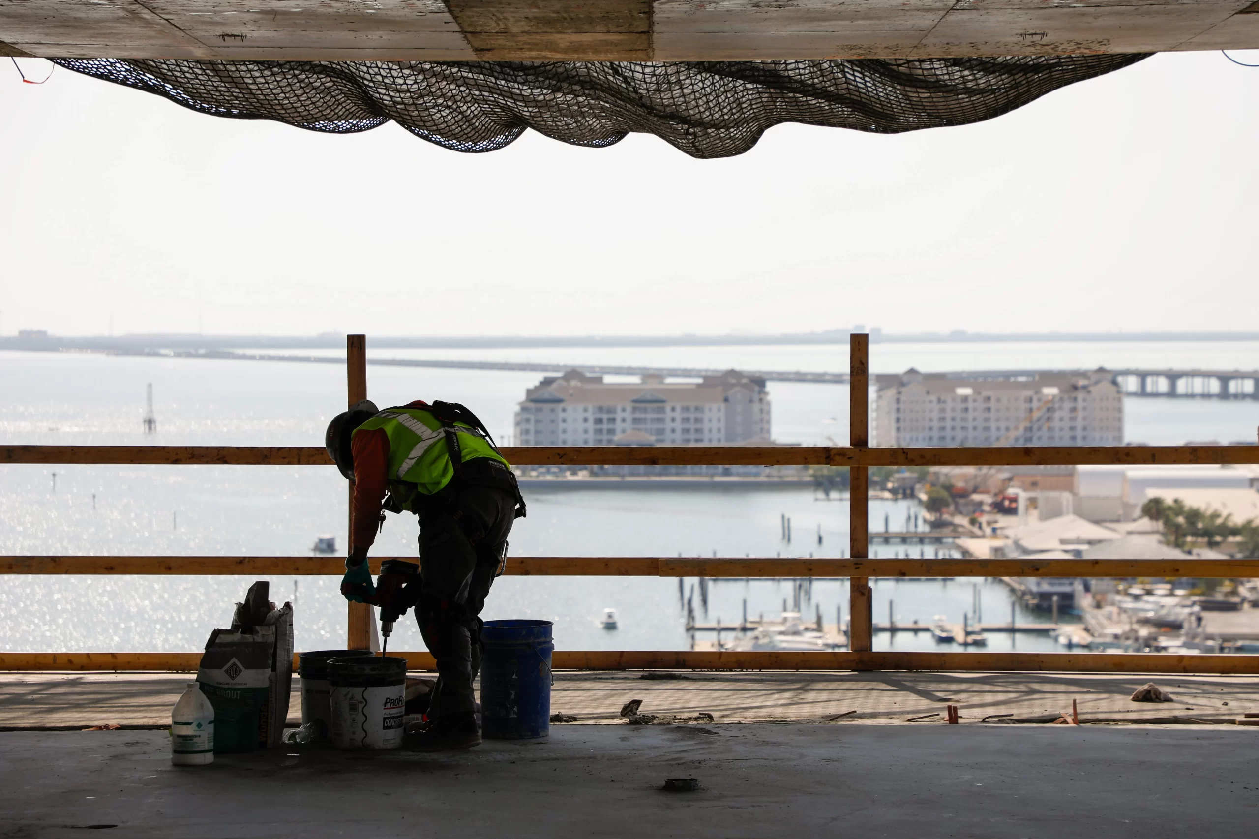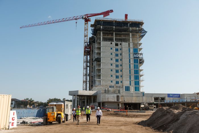 Vertical construction on the 17-story Aqua condominium at West Shore Yacht Club was completed this week.