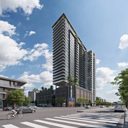 Upon completion, the residential tower will rise as the tallest in the area, offering unobstructed views, refined finishes and modern technology. It will have a wellness area, 10,000 square feet of co-working space, a pickleball court and a sky lounge on the 26th floor.