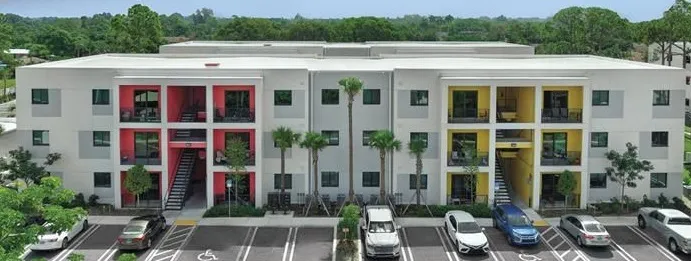 The $21-million, three-story, four-building residential complex in Palm Springs, Fla., built by Tom Murphy, Jr., and his company, Miami-based Renco USA, hardly appears unusual from the outside. On the inside, however, its structure represents a potential revolution in construction, Murphy and others believe. Constructed entirely from a mineral composite, fiber-reinforced building system that uses blocks that interlock like LEGO bricks to form its structural walls, floors, and roofs, the Palm Springs building is stronger than concrete and rated to withstand winds up to 275 mph.